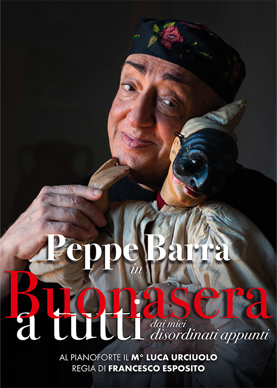 Il modo di fare teatro di Peppe Barra è stato più volte definito “le mille e una resurrezione dell’animo partenopeo”. Attraverso la sua maschera sarcastica e ai tanti registri vocali – dai più gravi ai più acuti -, unisce da sempre gli elementi colti e popolari della sua città, mescolando nei suoi spettacoli, con facilità, la tradizione e l’innovazione. Il recital “Buonasera a tutti” già dal titolo lascia intuire cosa dovrà aspettarsi il pubblico: un momento di intimità tra artista e spettatori, oltrepassando la cosiddetta quarta parete in un continuo dialogo con la platea. Un viaggio nella vita dell’uomo e dell’artista: i suoi ricordi di infanzia e adolescenza nella Procida e nella Napoli degli anni ’50, la sua memoria di giovanissimo attore con Zietta Liù, fino al successo della Nuova Compagnia di Canto Popolare e agli anni di teatro insieme alla indimenticata Concetta Barra, madre e compagna di scena. Una passeggiata nei suoi oltre 60 anni di carriera, tra teatro e canzone, toccando la musica barocca e la tradizione popolare, il mondo magico di Basile, grandi autori come Petito e Viviani, il varietà, il cabaret, fino a giungere ai cantautori contemporanei. Barra sarà unico mattatore in scena – insieme al maestro Luca Urciuolo che lo accompagnerà al pianoforte – per divertire ed emozionare, con follia e poesia. Senza mai interrompere il gioco con il pubblico, come un felice incontro tra bambini che hanno soltanto voglia di stare insieme e divertirsi …con gioia ed ironia.